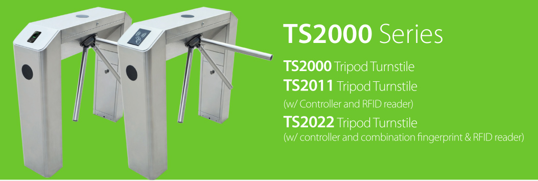 TS2000 series tripod arms are normally held in a locked position, thus denying access to the secured side. Upon TS2000 series reader (RFID and/or fingerprint) positively recognizing a user’s valid access card or fingerprint, its tripod arms unlock, thus allowing users passage to the secured side.